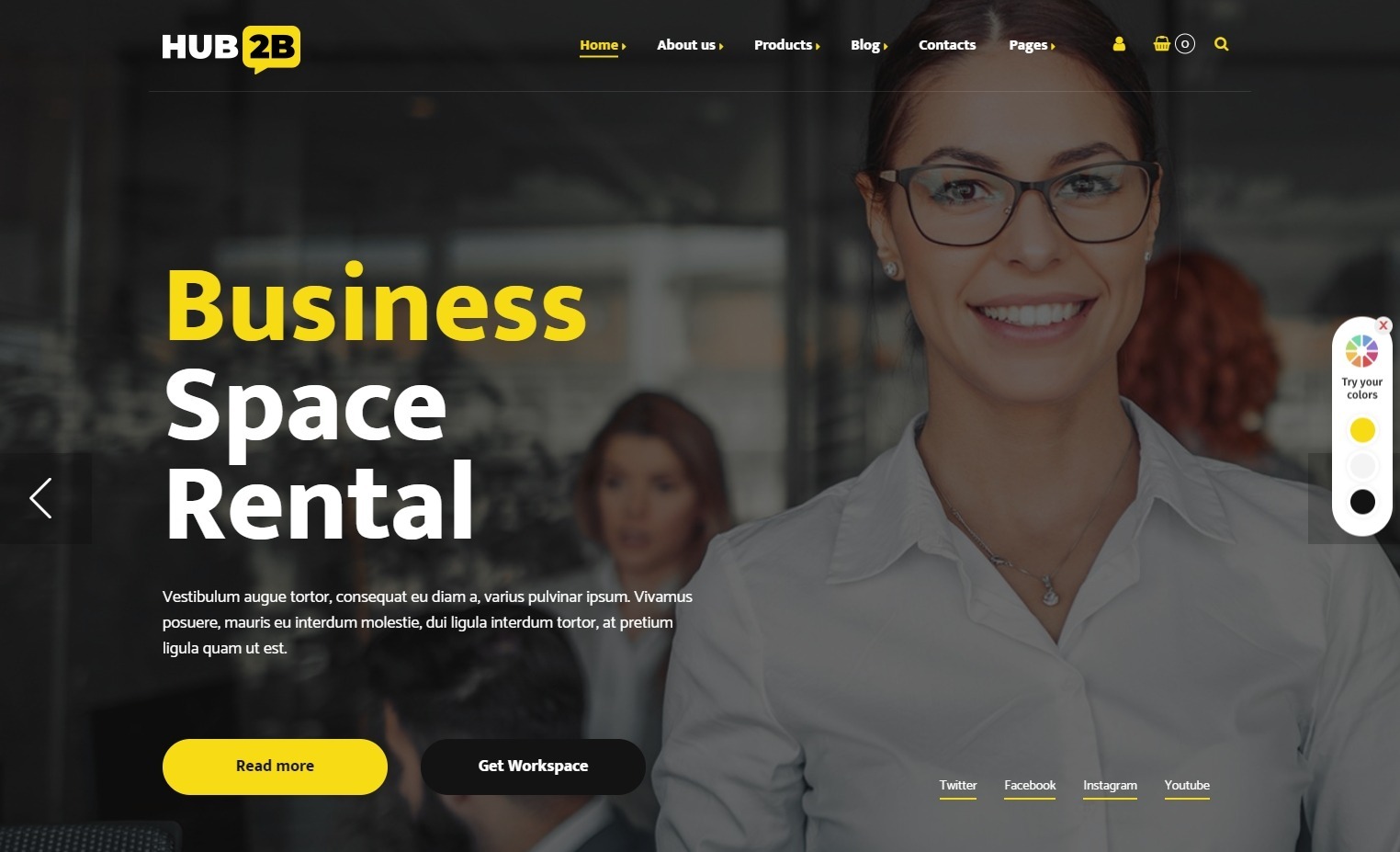 Hub2B WordPress Theme for Shared Office Rentals