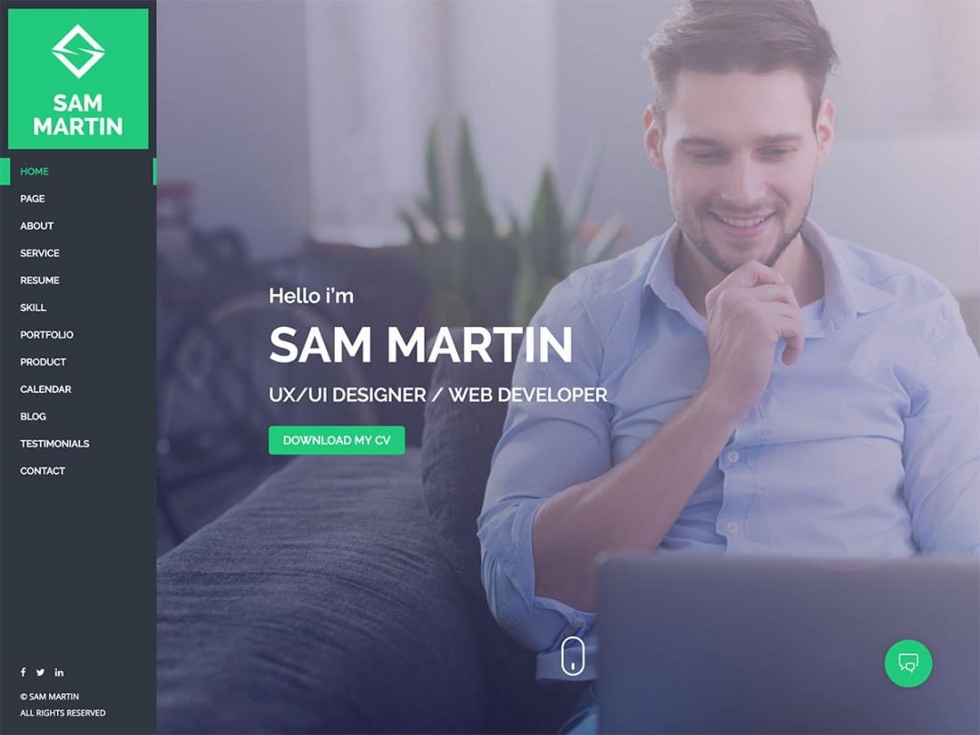 Templified Sam Martin VCard Resume WordPress Theme